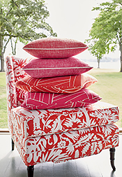 The gorgeous new fabric we used as the background to our email promoting this Blog post is LALY, from the new Alba collection by Manuel Canovas. Both vibrant and exotic in character this remarkable embroidery employs a variety of stitch-work to describe Frangipani, Protea and Heliconia, all foliage from Polynesia and the West Indies. Perfect for adding a shot of vibrancy to upholstery, cushions, curtains or blinds.
